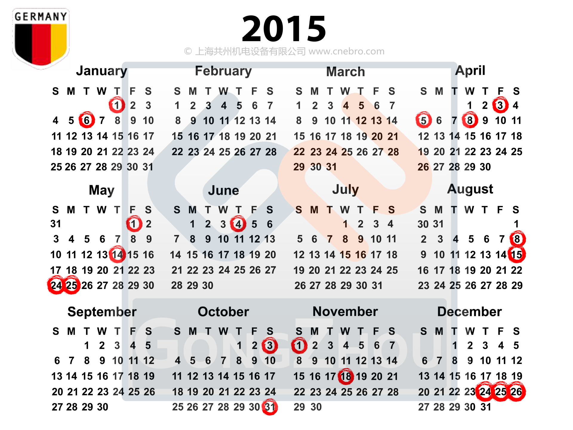 2015年德國放假安排