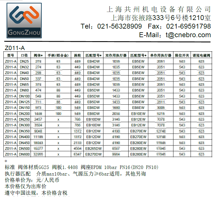 即日起,共州公司,EBRO蝶閥業務、福斯定位器、諾冠電磁閥業務均啟用全系價格體系,歡迎新老客戶垂詢!
